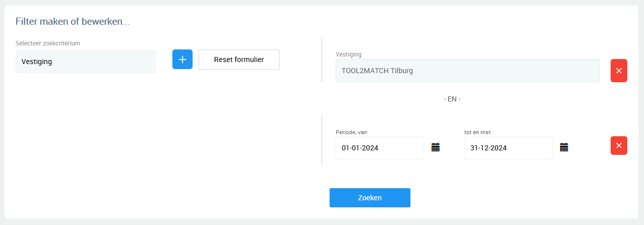Bovenin het scherm kan je een filtering inrichten voor de gehele pagina. Dit kan bijvoorbeeld op "Vacaturenaam", "Vestiging", "Recruiter" of "Periode". Op die manier krijg je dus eenvoudig inzichtelijk welke afwijsredenen zijn geselecteerd binnen een bepaalde periode door een bepaalde vestiging.
