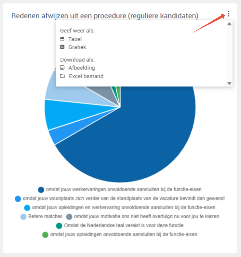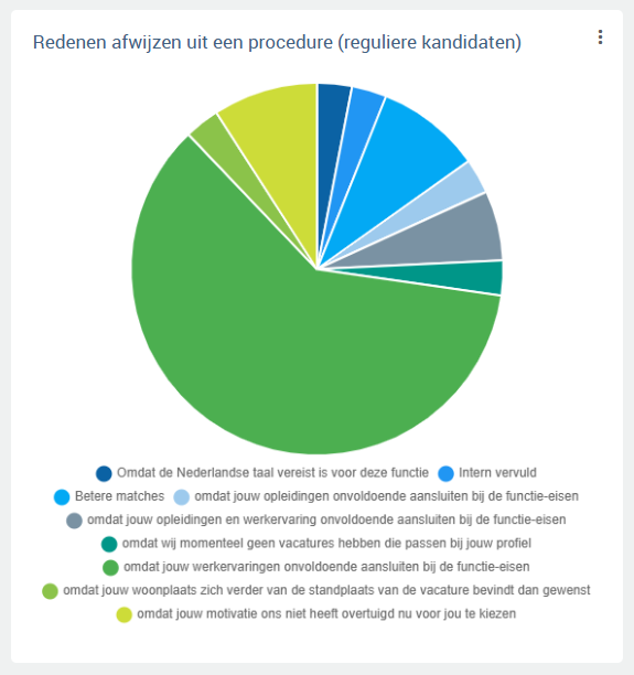 Als Gebruiker wil je snel inzicht krijgen in waarom kandidaten zijn afgewezen. Op de rapportenpagina kun je eenvoudig terugvinden welke afwijsredenen tijdens het afwijzingsproces zijn geselecteerd.